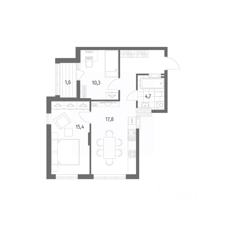 43 м² · Этаж 9 из 17