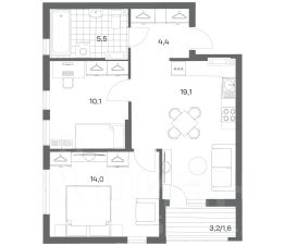 54 м2