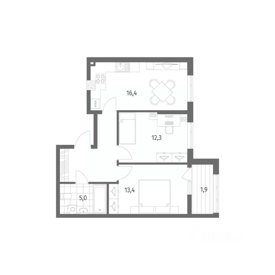 Продается квартира площадью 36.6 м² на 3 этаже 4 секции в Гагарина 30 от компании ГК ''ТРЕСТ''. Площадь кухни 13.9 м². Жилой комплекс комфорт-класса ''Гагарина 30'' расположен в Ленинградском районе Калининграда на улице Юрия Гагарина. Жилой комплекс включает в себя три корпуса высотой 9-18 этажей. Срок сдачи намечен на 1 квартал 2028 года. Жилой комплекс расположен в географическом центре города Калининград. Он знаменит Музеем янтаря, Королевскими воротами, Верхним и Нижним прудами, районами Альтштадт и Лебенихт. Из жилого квартала за 10 минут можно добраться до парков Тихий и Кальтхёфер. В жилом комплексе 457 квартир, из них 55% двух- и трёхкомнатные. Доступны варианты с просторными кухнями-гостиными, мастер-спальнями и кладовыми. На первых этажах расположены квартиры с приватными открытыми террасами. На верхних этажах лоджии с холодным остеклением, панорамными и увеличенными окнами. Высота потолков первого и последнего этажей - 3 м (кроме первого корпуса), остальных 2,72 м. Интерьеры МОП-ов выполнены в минималистичном стиле с контрастными, дополняющими друг друга материалами. Благодаря использованию светлых оттенков, природных текстур и декоративного освещения, пространство имеет большое количество света. В лифт-холле предусмотрена зона ожидания с мягкой мебелью. Почтовые ящики вынесены в тамбур, а рядом со стойкой домофона предусмотрена консоль для сумок. Дизайн-проект разработан студией Right design. Для удобства автомобилистов созданы подземные паркинги: на 125 машиномест и кладовые помещения. В паркинг можно будет спуститься на лифте комфортно людям, безопасно автомобилям!