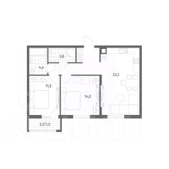 Продается квартира площадью 33.8 м² на 1 этаже 1 секции в River Park от компании ГК ''ТРЕСТ''. Площадь кухни 14.1 м².