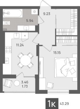 43 м2