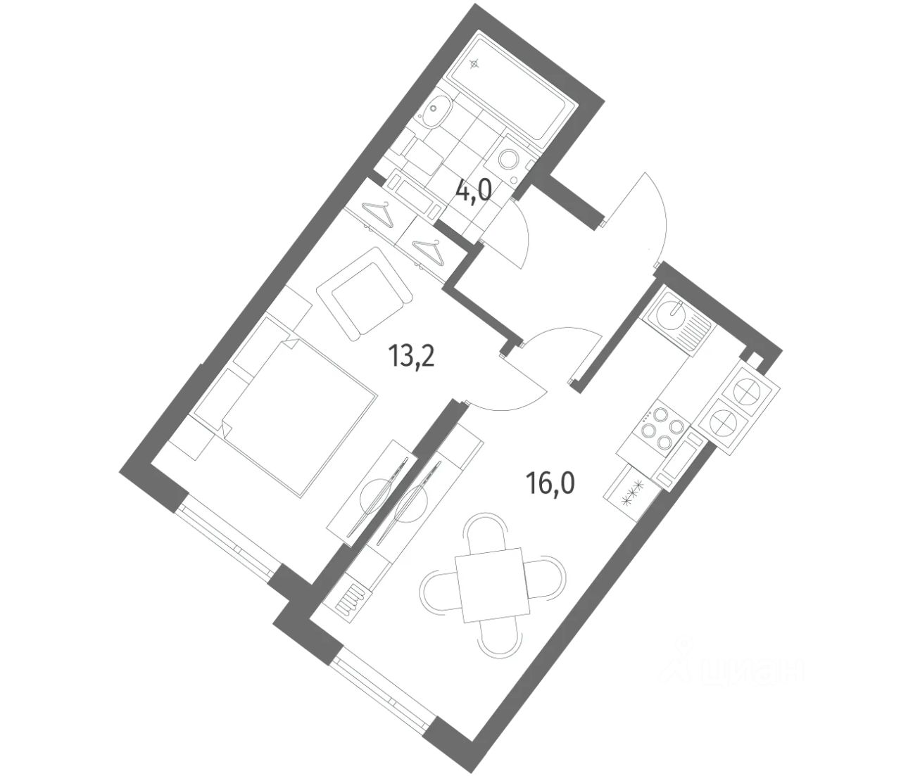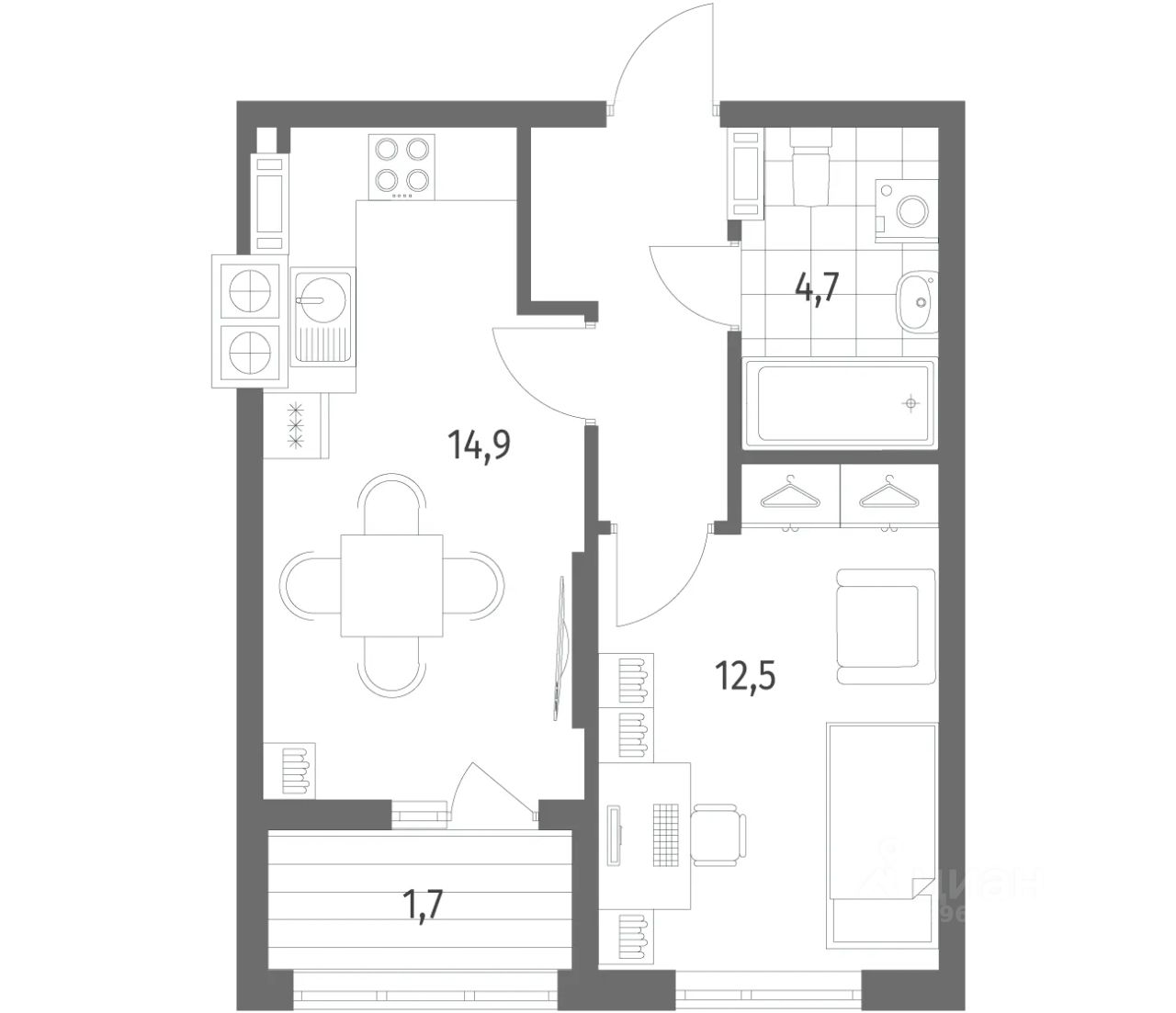 34 м² · Этаж 9 из 9