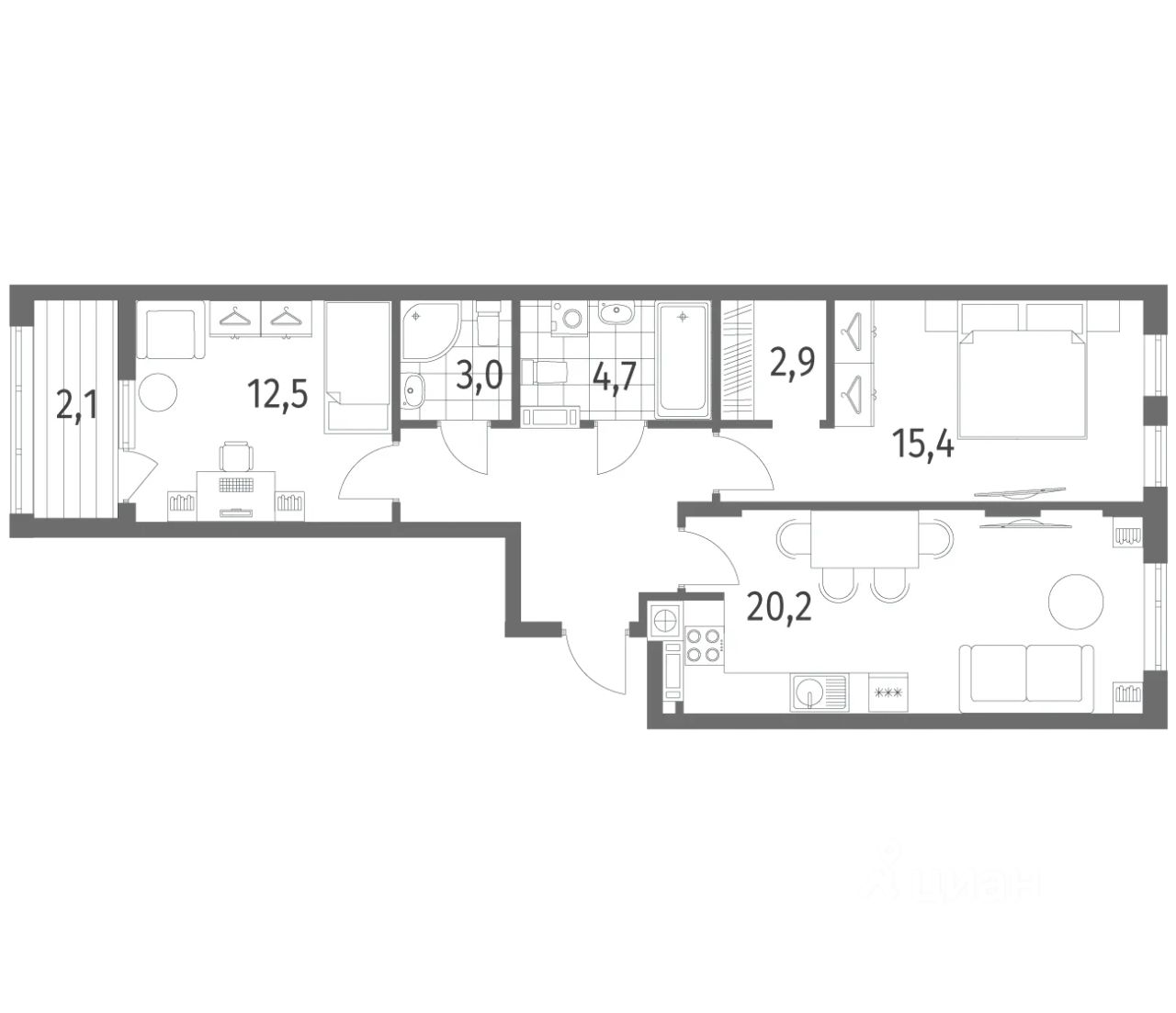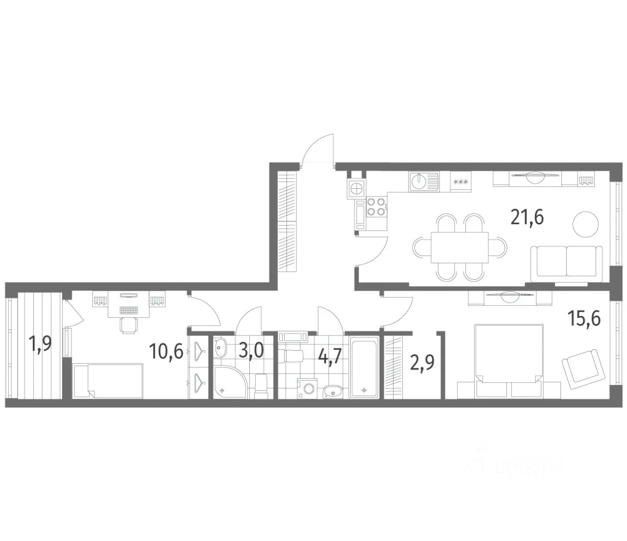 57 м² · Этаж 9 из 9