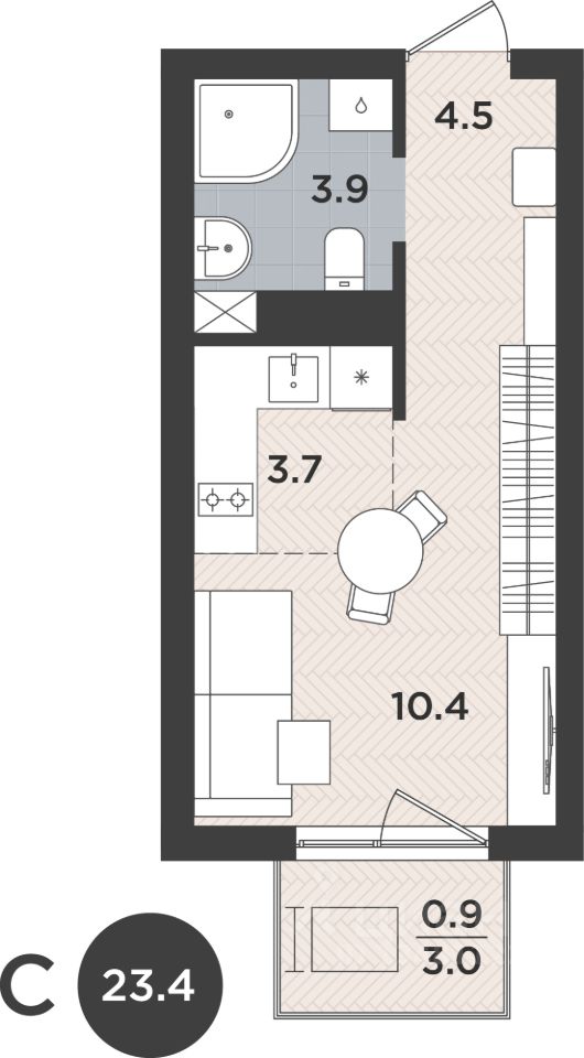 34 м² · Этаж 9 из 9