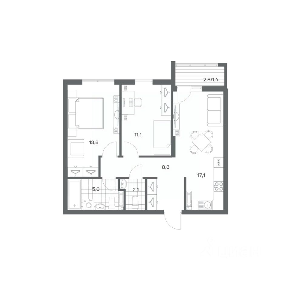 Продается квартира площадью 58.8 м² на 4 этаже 3 секции в Гагарина 30 от компании ГК ''ТРЕСТ''. Площадь кухни 17.1 м². Жилой комплекс комфорт-класса ''Гагарина 30'' расположен в Ленинградском районе Калининграда на улице Юрия Гагарина. Жилой комплекс включает в себя три корпуса высотой 9-18 этажей. Срок сдачи намечен на 1 квартал 2028 года. Жилой комплекс расположен в географическом центре города Калининград. Он знаменит Музеем янтаря, Королевскими воротами, Верхним и Нижним прудами, районами Альтштадт и Лебенихт. Из жилого квартала за 10 минут можно добраться до парков Тихий и Кальтхёфер. В жилом комплексе 457 квартир, из них 55% двух- и трёхкомнатные. Доступны варианты с просторными кухнями-гостиными, мастер-спальнями и кладовыми. На первых этажах расположены квартиры с приватными открытыми террасами. На верхних этажах лоджии с холодным остеклением, панорамными и увеличенными окнами. Высота потолков первого и последнего этажей - 3 м (кроме первого корпуса), остальных 2,72 м. Интерьеры МОП-ов выполнены в минималистичном стиле с контрастными, дополняющими друг друга материалами. Благодаря использованию светлых оттенков, природных текстур и декоративного освещения, пространство имеет большое количество света. В лифт-холле предусмотрена зона ожидания с мягкой мебелью. Почтовые ящики вынесены в тамбур, а рядом со стойкой домофона предусмотрена консоль для сумок. Дизайн-проект разработан студией Right design. Для удобства автомобилистов созданы подземные паркинги: на 125 машиномест и кладовые помещения. В паркинг можно будет спуститься на лифте комфортно людям, безопасно автомобилям!