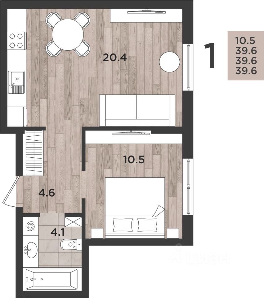 39 м² · Этаж 1 из 14