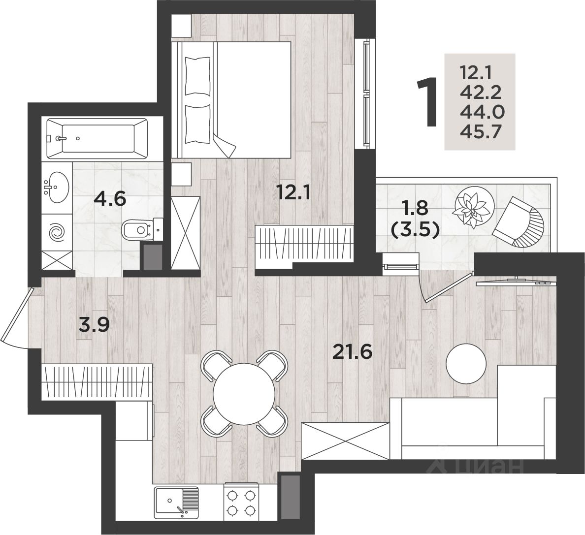 45 м² · Этаж 8 из 14
