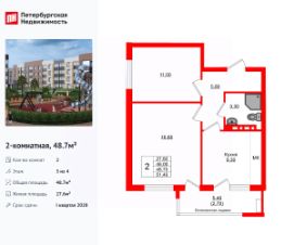 Продается уютная 2-комнатная квартира от застройщика в жилом комплексе ''Кроны и Волны'' в Зеленоградск.Удобная, классическая, функциональная европланировка, большая кухня-гостиная 17.7 м², вместительная прихожая 6 м². Общая площадь квартиры - 53 м², жилая 12.2 м², высота потолка 2.7 м.Квартира продается с отделкой ''КиВ ''Норд Лайн Светлый''''.Что особенного в ЖК ''Кроны и Волны''?• Современный малоэтажный жилой комплекс• Дизайнерские детские площадки, зоны для спорта и активного отдыха, велодорожки• Помещения для колясок и велосипедов в каждой парадной• Неповторимые лесные пейзажи в непосредственной близости к побережью Балтийского моря• Концепция ''Двор без машин''