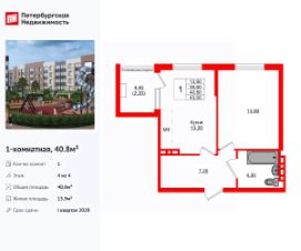 Продается просторная 1-комнатная квартира от застройщика в жилом комплексе ''Кроны и Волны'' в Зеленоградск.Удобная, классическая планировка, кухня 13.2 м², просторная прихожая 7.2 м². Общая площадь квартиры - 40.8 м², жилая 13.9 м², высота потолка 3 м.Квартира продается с отделкой ''КиВ ''Nord Line Silver''''.Что особенного в ЖК ''Кроны и Волны''?• Современный малоэтажный жилой комплекс• Дизайнерские детские площадки, зоны для спорта и активного отдыха, велодорожки• Помещения для колясок и велосипедов в каждой парадной• Неповторимые лесные пейзажи в непосредственной близости к побережью Балтийского моря• Концепция ''Двор без машин''