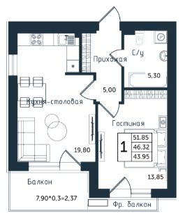 Продаётся 1-комнатная квартира в строящемся доме (Дом 1), срок сдачи: II-кв. 2026, общей площадью 51.28 кв.м., на 4 этаже. Новый жилой комплекс ''Янтарные Сезоны'' от Группы компаний ''Модуль-Стройград'' расположен по адресу: Калининградская обл., пгт Янтарный, ул. Советская.