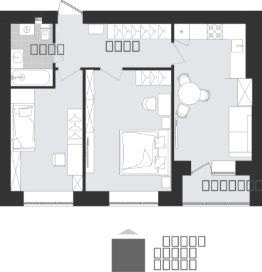 Продаётся 1-комнатная квартира в строящемся доме (Дом 6), срок сдачи: III-кв. 2027, общей площадью 33.57 кв.м., на 2 этаже. Новый жилой комплекс ''Этюд'' от Группы компаний ''Модуль-Стройград'' расположен в г. Калининград на ул. Поленова.