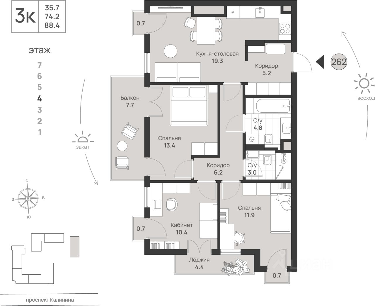 88 м² · Этаж 4 из 7