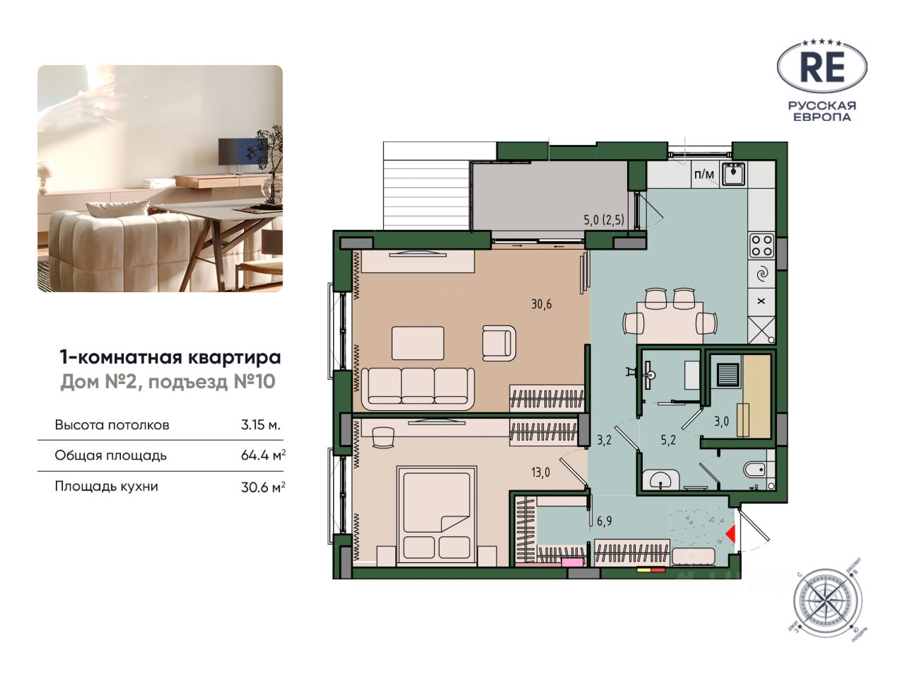 30 м² · Этаж 6 из 9