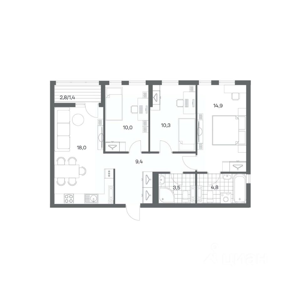 Продаётся 3-комнатная квартира в строящемся доме (Дом 2 очередь 8), срок сдачи: IV-кв. 2026, общей площадью 80.5 кв.м., на 4 этаже. Жилой квартал ''Невский парк'' - один из самых зеленых жилых кварталов Калининграда.Квартал, строящийся по принципу ''город в городе'' впечатляет своим масштабом и одновременно продуманностью всех деталей, как самого комплекса в целом, так и отдельно стоящих домов, и квартир. Озеленению здесь, действительно уделено особое внимание, и название ''Невский парк'' говорит само за себя. Квартиры в этом жилом квартале выгодная инвестиция как в качество собственной жизни, так и в перспективе дальнейшей продажи.ЖК ''Невский парк'' - современные, качественные, красивые дома с архитектурной подсветкой и индивидуальными дизайнерскими решениями в зонах общего пользования, включая подъезды.Квартал строится надёжной компанией ЗАО КалининградСтройИнвест'', с 29-летним опытом на строительном рынке. В эксплуатацию уже сданы первые дома квартала, в которые уже заселились счастливые собственники.Преимущества и основные характеристики жилого квартала:Удобное расположение:-10 минут до центра города-20 минут до аэропорта ''Храброво''-30 минут до берега моряЖилье комфорт-класса, в котором предусмотрено всё для удобства и уюта проживания:умный домофон и видеонаблюдение для вашей безопасности,возможность установки кондиционеров и антенн без ущерба для фасада здания.Спорт и активный образ жизни в ''Невском парке'':-велодорожки на протяжении всего квартала,-велопарковка и зона обслуживания велосипедов с подкачкой колес в каждом доме,-площадки для различных видов спорта.Здесь всё продумано до мелочей:Развитая инфраструктура внутри квартала:-современные игровые площадки,-зона выгула собак,-закрытые колясочные и велосипедные помещения, доступные только для жителей,-санузлы в каждом доме для удобства жильцов.Особенные детали для уюта и комфорта проживания:-автономное отопление,-углубленные лоджии и французские балконы,-высококачественные двери индивидуального дизайна,-заниженные подоконники на высоте 700 мм,-цветной оконный профиль производства Германия и двухкамерные стеклопакеты,-двойной воздухообмен на кухне.Просторные красивые подъезды и общественные пространства внутри дома:-уникальный и эффектный дизайн,-доступная среда - входы без ступеней и проходные лифты,-алюминиевые входные группы с двойным магнитом,-бесшумные лифты с повышенным скоростным режимом,-энергоэффективное освещение, установленное на датчиках движения,-навигация и шумоизоляция лифтовых шахт.Воспользуйтесь возможностью жить в одном из самых интересных, безопасных, красивых и комфортабельных жилых комплексов Калининграда - в домах ''Невский парк''!Сделайте ваш выбор в пользу высокого качества жизни.Сданные дома :+ Безналичный расчет+ Рассрочка на 2 года+ Ипотека под готовое жилье+ Материнский капитал+ Военная ипотекаСтроящиеся дома :+ Субсидированная ипотека (IT-ипотека и семейная ипотека)+ Материнский капитал+ Военная ипотекаНе упустите
