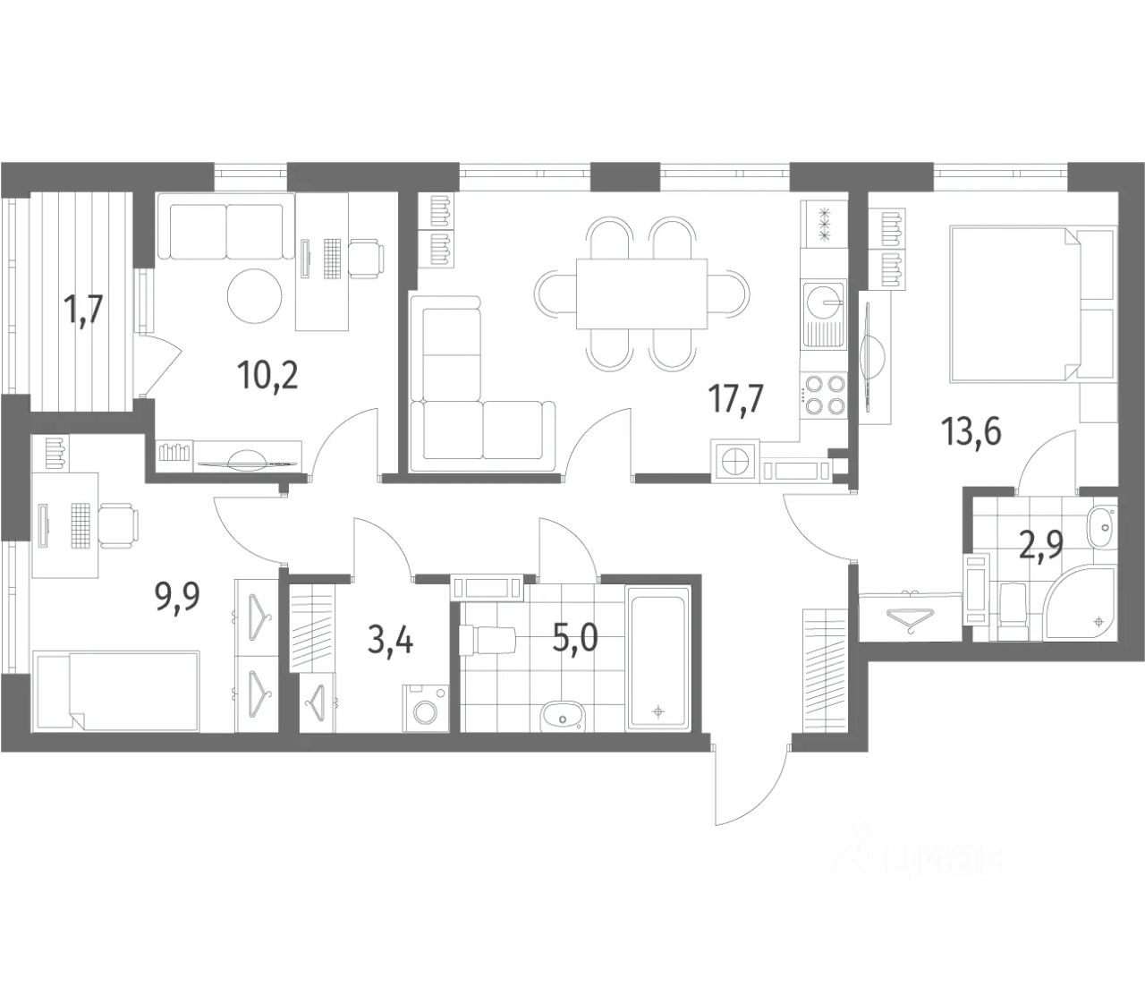 87 м² · Этаж 10 из 17
