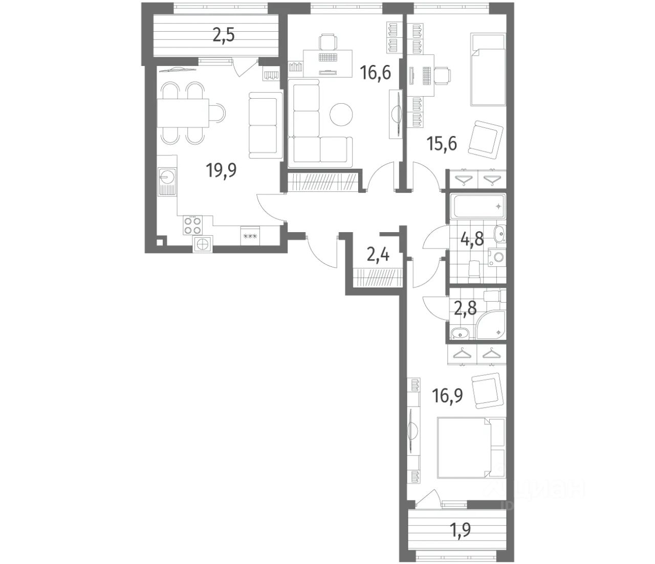 Трехкомнатные