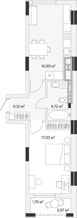 Однокомнатная квартира — это гармоничное сочетание современной планировки, естественного света и продуманной функциональности. Пространство легко зонируется на спальную и гостиную зоны, а просторная кухня с возможностью размещения полноценной обеденной группы становится центром домашнего уюта и встреч с близкими. Лоджия, выходящая из жилой зоны, расширяет полезную площадь: здесь можно организовать рабочий уголок, мини-оранжерею или уютное место для отдыха с чашкой кофе утром.