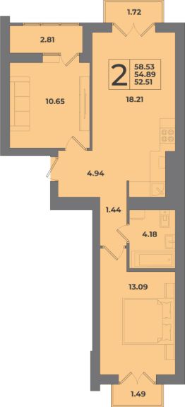 Продаётся 2-комнатная квартира в строящемся доме (Дом 7), срок сдачи: IV-кв. 2026, общей площадью 58.46 кв.м., на 3 этаже. Жилой комплекс ''Родина'' представляет собой группу многоквартирных домов в Калининграде. В шаговой доступности от комплекса расположены детские сады, школа и поликлиника.