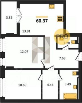 Квартира: 2 к 60,43 кв.м., 7 этаж в комплексе Включи, 4 очередь, корп.6, сдача: 1кв. , этажей: 7, адрес Гурьевск г., Героя России Катериничева ул., , Застройщик: ССК. Номер в базе: J31258L26677