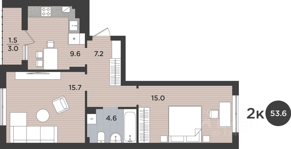 53 м² · Этаж 8 из 9