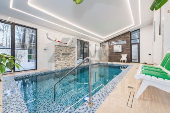 Арт. 128656178 Продается ВИЛЛА класса ЛЮКС в курортном городе Светлогорске в сосновом бору.Уникальный дом, построен в супер современном стиле хай-тек! На территории 22 сотки (собственности) расположены два дома: основной дом 500 кв.м и гостевой дом 181.9 кв.м .Участок находится на побережье Балтийского моря в курортном городе Светлогорске, вдали от городской суеты в лесу. Идеально: комфорт и уют. Он расположен в 8 минутах ходьбы до пляжа Балтийского моря среди вековых сосен. 1. Основной двухэтажный жилой дом с вместительным гаражом на 2 автомобиля и уютной террасой общей площадью 500 кв.м . Сосновый бор, ландшафтный дизайн, все дорожки выложены в скандинавском стиле - террасной доской лиственницы, на газон установлена система автополива, уличное освещение, подсветка деревьев. Грамотное зонирование, сад , экзотические растения, вдоль ограждений высажены цветы и кипарисы, каждый дом с ночным неоновым освещением как Лас-Вегас, вдоль дорожек установлено вечернее освещение. Дом - монолит, частично из керамического кирпича, отделка фасада - дерево, панорамное остекление с алюминиевым каркасом, часть фасада итальянской клинкерный кирпич и мраморный плиты, утеплен и оштукатурен. Отделка дома из премиальных материалов, выполнена по индивидуальному проекту и под личным контролем дизайн-бюро. Уникальное сочетание натуральных материалов и современных технологий. В доме много света и тепла, высокие потолки, просторные комнаты. Все коммуникации центральные, автономное газовое отопление, электричество 20 кВт, установлена современная система очистки воды, поэтажное кондиционирование, теплый пол, разноуровневый свет, дом подключен к системе ''Умный дом''. Планировка основного дома удобна и практична. В доме есть буквально ВСЕ! Современный ,с исключительным дизайном интерьера. Просторный холл, парадная входная группа, гостевой санузел, уютная спальня и атмосферный зал совмещенный с просторной обеденной зоной .Огромная гостиная с камином и выходом на террасу. Из окон открывается чудесный вид в лес и на территорию дома, что способствует релаксу после трудовых будней. В доме современная и качественная мебель, в кухне премиальная техника, всё от ведущих люксовых брендов.На втором этаже расположены хозяйская спальня с панорамным остеклением и выходом на открытую террасу, откуда открывается впечатляющий вид на лес. К спальне прилегает отдельная гардеробная и приватная ванная комната. Так же на втором этаже располагаются просторные гостевые спальни, домашний кинотеатр с прекрасной акустикой и звукоизоляцией, спортивный зал с инфракрасной сауной. 2. Гостевой двухэтажный дом 181,9 кв.м., в стиле Швейцарского шале, полностью автономный, газовое отопление подходит для круглогодичного проживания. На 1-м этаже расположены: гостиная - зал, кухня с выходом в сад. Дом имеет свою зону релакса, современная баня ''на дровах'' с выходом к подогреваемому бассейну с водопадом и купелью на улице. При отделке использовали специальную древесину с приятным ароматным запахом и гималайскую соль( выложена целая стена). Бассейн , размером 3-7 метра имеет разноуровневую глубину, что позволяет безопасно купаться детям и полноценно отдыхать всей семье. Температура в бассейне комфортная 32-34 градуса, не оставит равнодушным и зона барбекю. На 2-м этаже :спальня, санузел с душем и балкон с ви