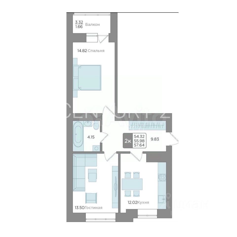 56 м² · Этаж 7 из 9