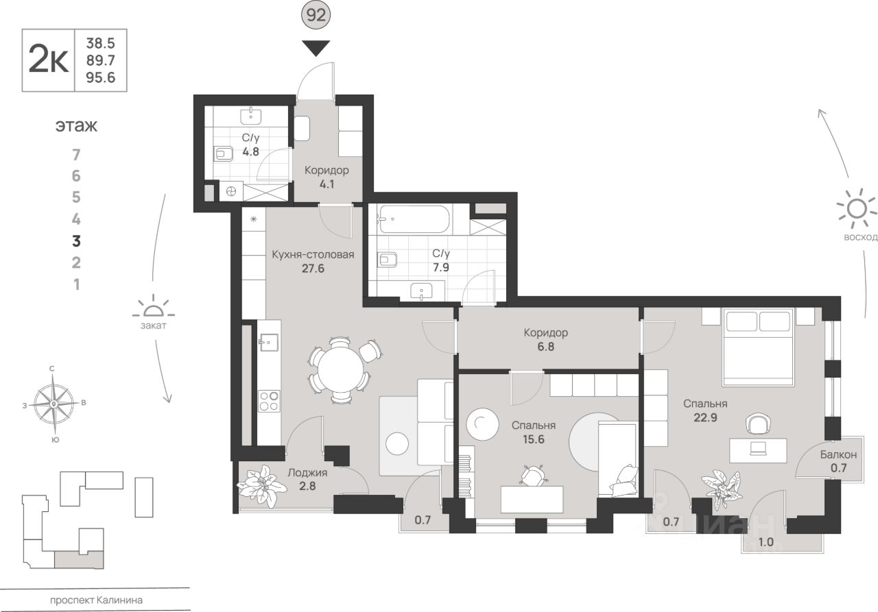 Общая площадь95,6 м2