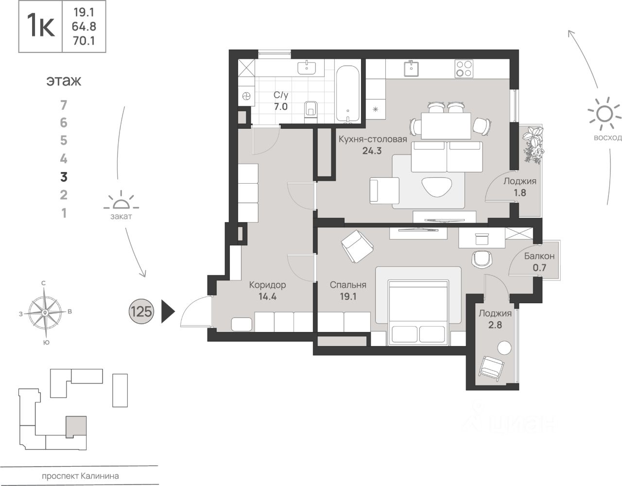 Общая площадь70,1 м2