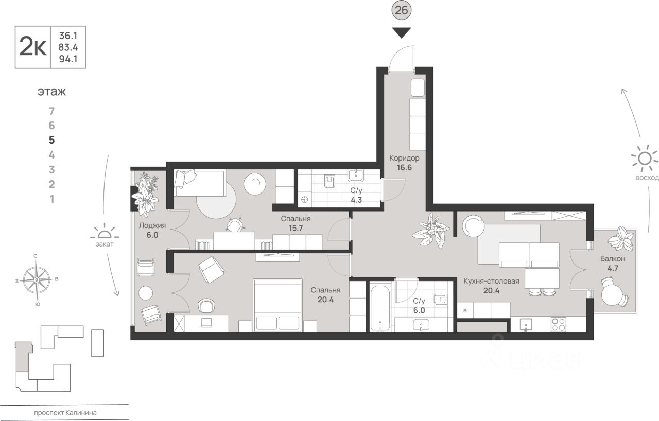 Общая площадь94,1 м2