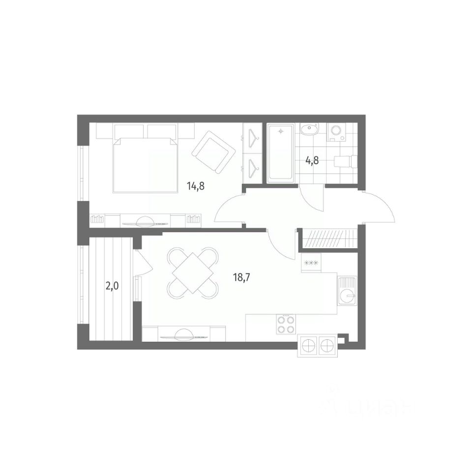 Продается квартира площадью 45.2 м² на 1 этаже 1 секции в Дом на Красной от компании ГК ''ТРЕСТ''. Площадь кухни 18.7 м². Жилой комплекс комфорт-класса ''Дом на Красной'' расположен в Центральном районе Калининграда на пересечении улиц Красная и Псковская. Жилой комплекс включает в себя два дома высотой 8 этажей. Срок сдачи намечен на 4 квартал 2026 года.