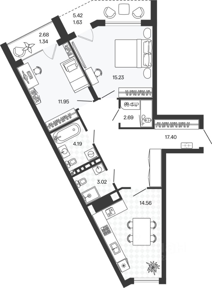 Жилая площадь41,7 м2