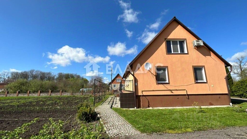 Дом- в 2 этажа, , на 2 авто, надворные постройки для подсобного хозяйства, (коровник,клетки для циплят, курятник) просторный погреб, а так же -уличная беседка с зоной барбекю, свой лес ( есть грибы), облагороженный пруд с рыбками , , , , , , и , декоративные туи. В поселке есть школа (11 классов), сельский клуб и библиотека, продуктовые магазины, пункт OZON, почта, Хорошая транспортная развязка,оборудованная автобусная остановка , маршруты 109 и 573. Дорога к поселку ровный асфальт, поселок находится на развилке, по расстоянию- до г. Советск- 37 км. до г. Черняховск- 30 км., до г. Неман -26 км. и до г.Гусев- 31 км.