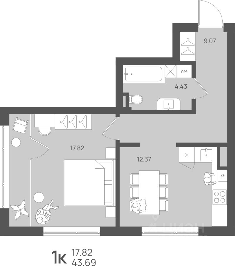 Продаётся 1-комнатная квартира в сданном доме (Юбилейный, 4), срок сдачи: III-кв. 2025, общей площадью 43.69 кв.м., на 1 этаже. Новый жилой комплекс ''Морис'' от Строительной компании ''Меркурий'' расположен по адресу: Калининградская область, пгт Янтарный, ул. Обогатительная.