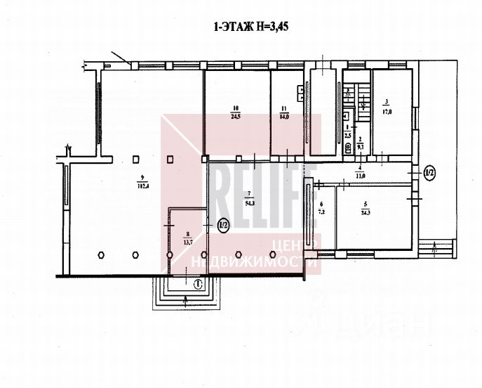 В помещении есть несколько отдельных входов. Все коммуникации - центральные.