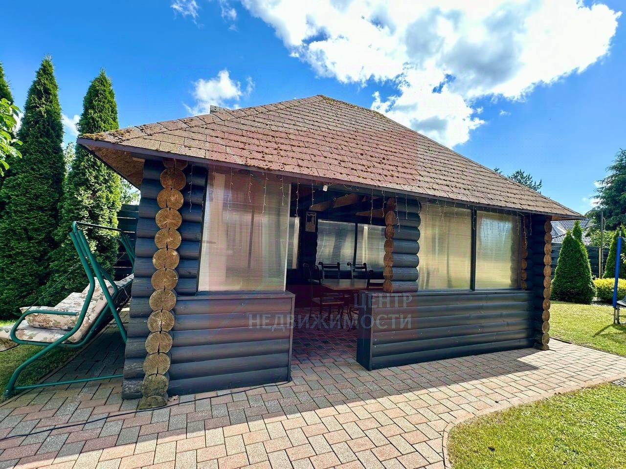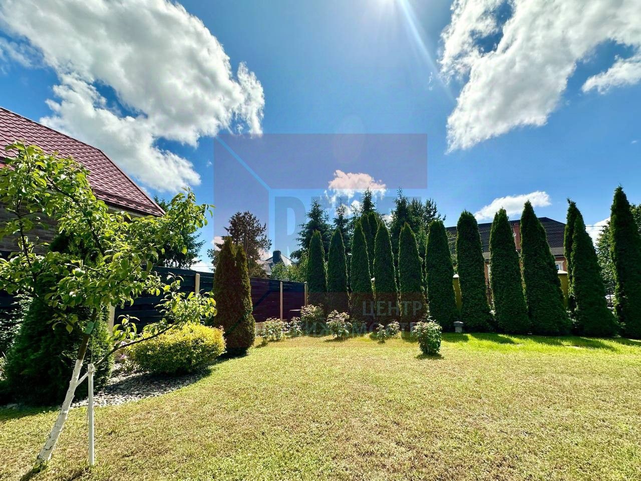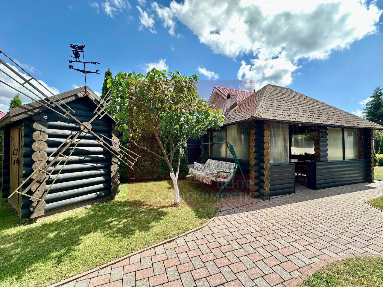 Комплекс расположен на земельном участке 12 соток. Территория полностью огорожена, на участке выполнен ландшафтный дизайн, высажены вечнозеленые деревья и кустарники, обустроена зона барбекю с беседкой. Гараж на 2 автомобиля имеет удобный подъезд.
