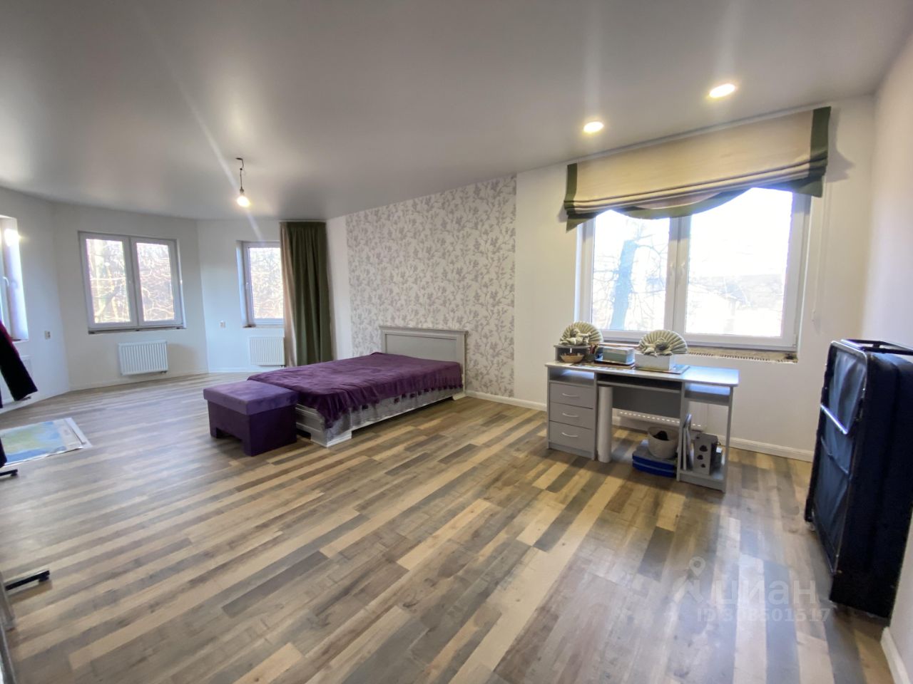 Поднимаясь вверх на один лестничный пролет вашему вниманию предоставляется уютная, просторная спальня с окнами эркер, а так же с гардеробной, большая ванная комната с окном