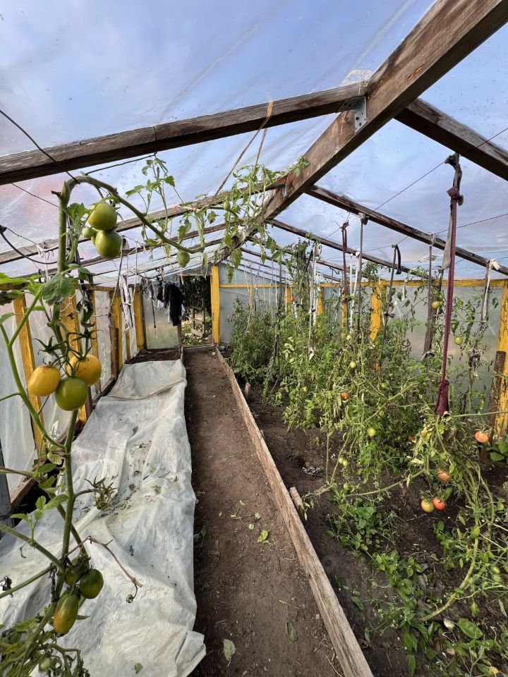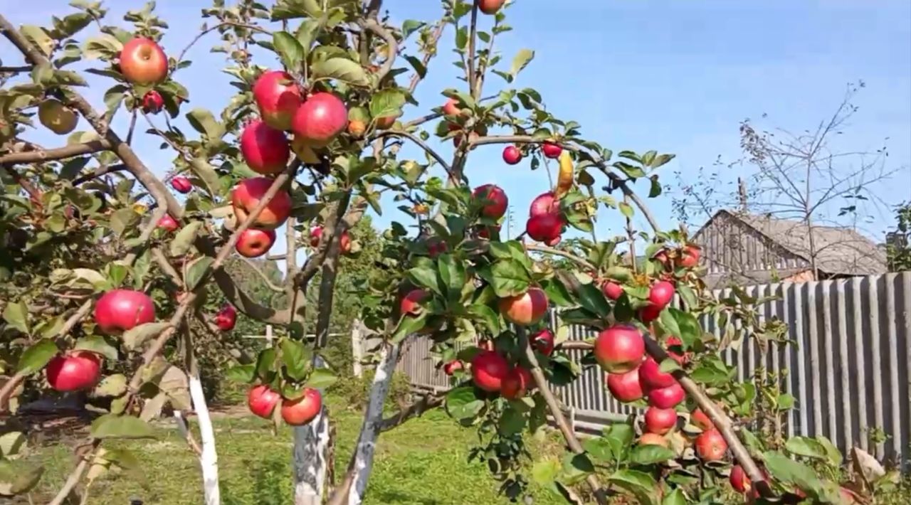 Ухоженный земельный участок с плодоносящими кустарниками и деревьями: яблони разных сортов, груши, абрикосы, черешня, вишня, слива, айва, калина, грецкий орех, малина (на 10 сотках), черная смородина (100 кустов), крыжовник, виноград