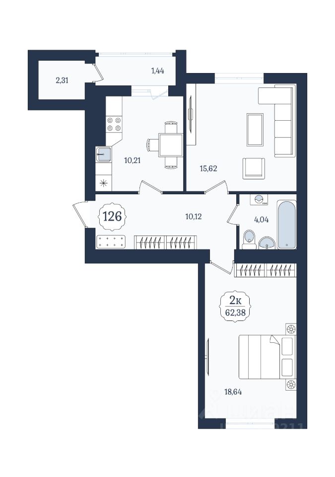Общая площадь62,38 м2