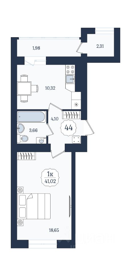Общая площадь41,02 м2