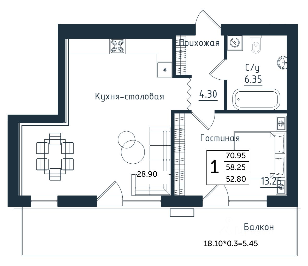 Продаётся 1-комнатная квартира в строящемся доме (Дом 3), срок сдачи: II-кв. 2026, общей площадью 70.95 кв.м., на 2 этаже. Новый жилой комплекс ''Янтарные Сезоны'' от Группы компаний ''Модуль-Стройград'' расположен по адресу: Калининградская обл., пгт Янтарный, ул. Советская.