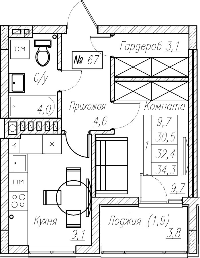 Общая площадь32,4 м2