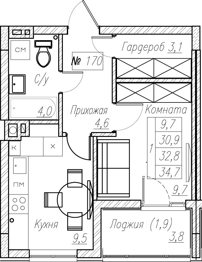 Общая площадь32,8 м2