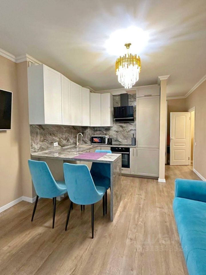 Интерьер квартиры выполнен в современном стиле с использованием качественных материалов и нейтральных цветов, создающих атмосферу уюта и гармонии. Санузел совмещенного типа отделан итальянским керамогранитом, оборудован большой ванной и душевой кабиной. Просторная кухня укомплектована встроенной бытовой техникой: стиральной машиной, духовкой, индукционной плитой и холодильником. Все необходимое для комфортного проживания уже предусмотрено, включая мебель и технику, благодаря чему вы сможете сразу же начать новую жизнь без лишних хлопот.