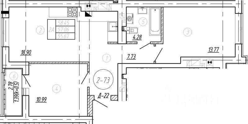 Квартира: 2 к 57,06 кв.м., 8 этаж в комплексе Подсолнухи, 4 очередь, корп.6, сдача: 4кв. , этажей: 9, адрес Калининград г., Понартская ул., д. 12, Застройщик: Модуль-Стройград. Номер в базе: J26193L21830