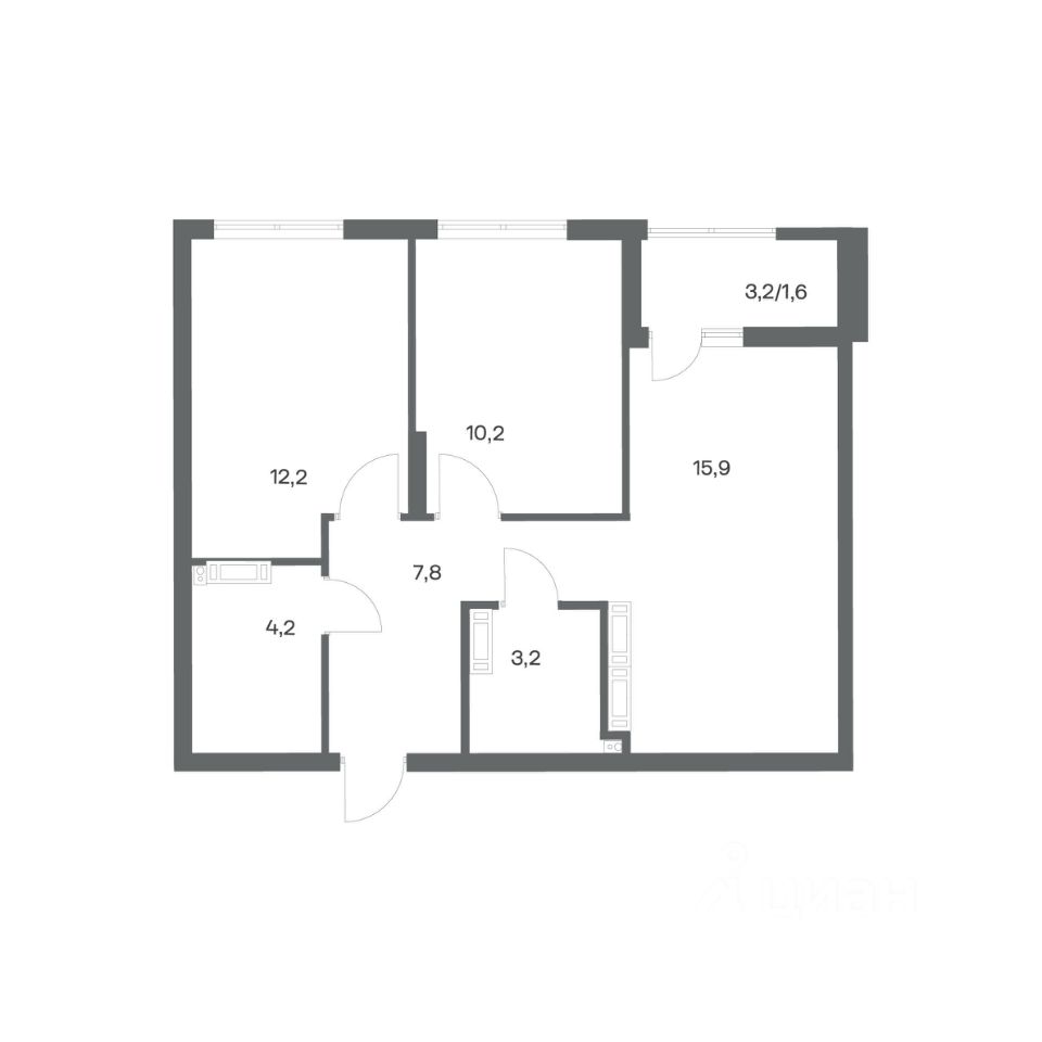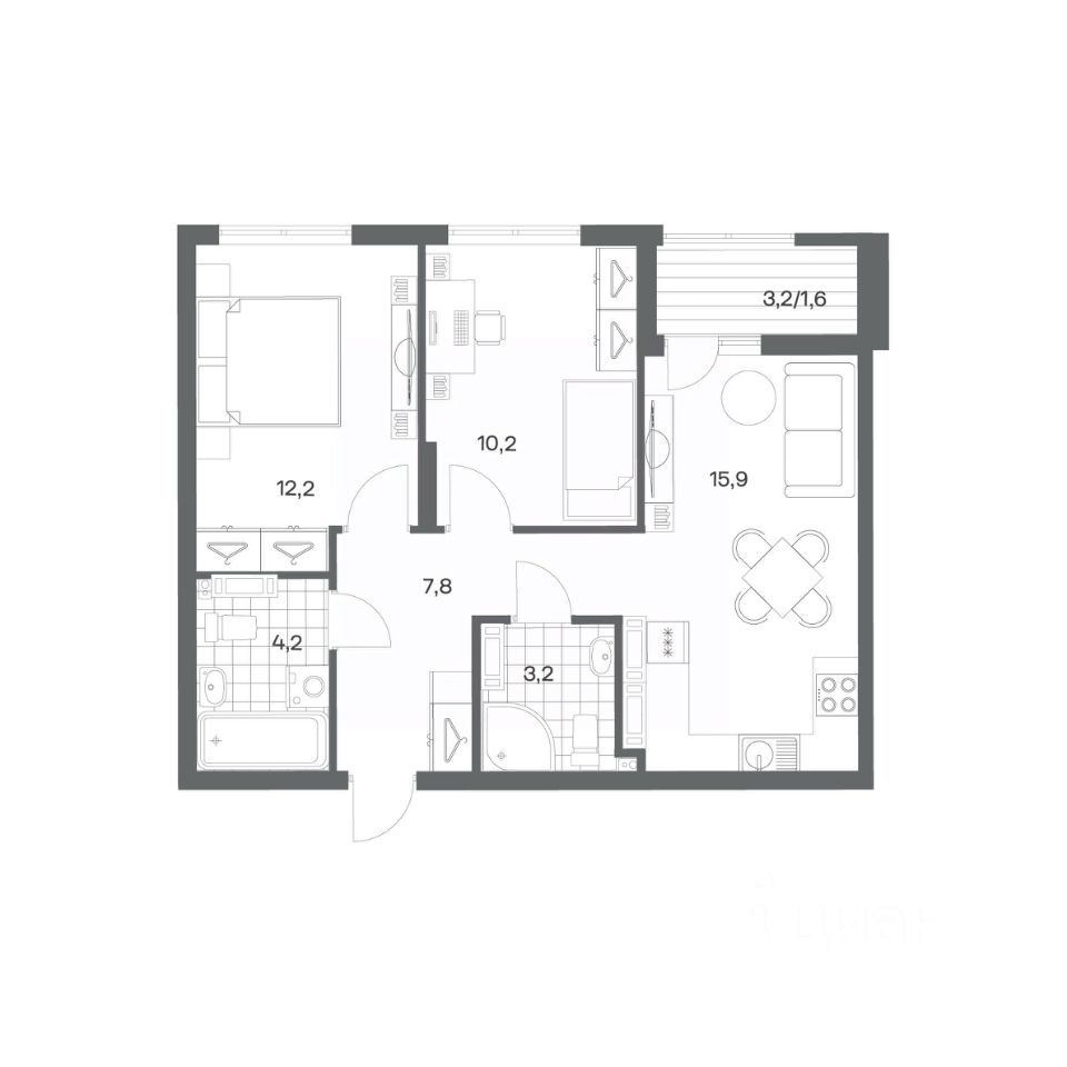 Продается квартира площадью 55.1 м² на 12 этаже 1 секции в Гагарина 30 от компании ГК ''ТРЕСТ''. Площадь кухни 15.8 м². Жилой комплекс комфорт-класса ''Гагарина 30'' расположен в Ленинградском районе Калининграда на улице Юрия Гагарина. Жилой комплекс включает в себя три корпуса высотой 9-18 этажей. Срок сдачи намечен на 1 квартал 2028 года.