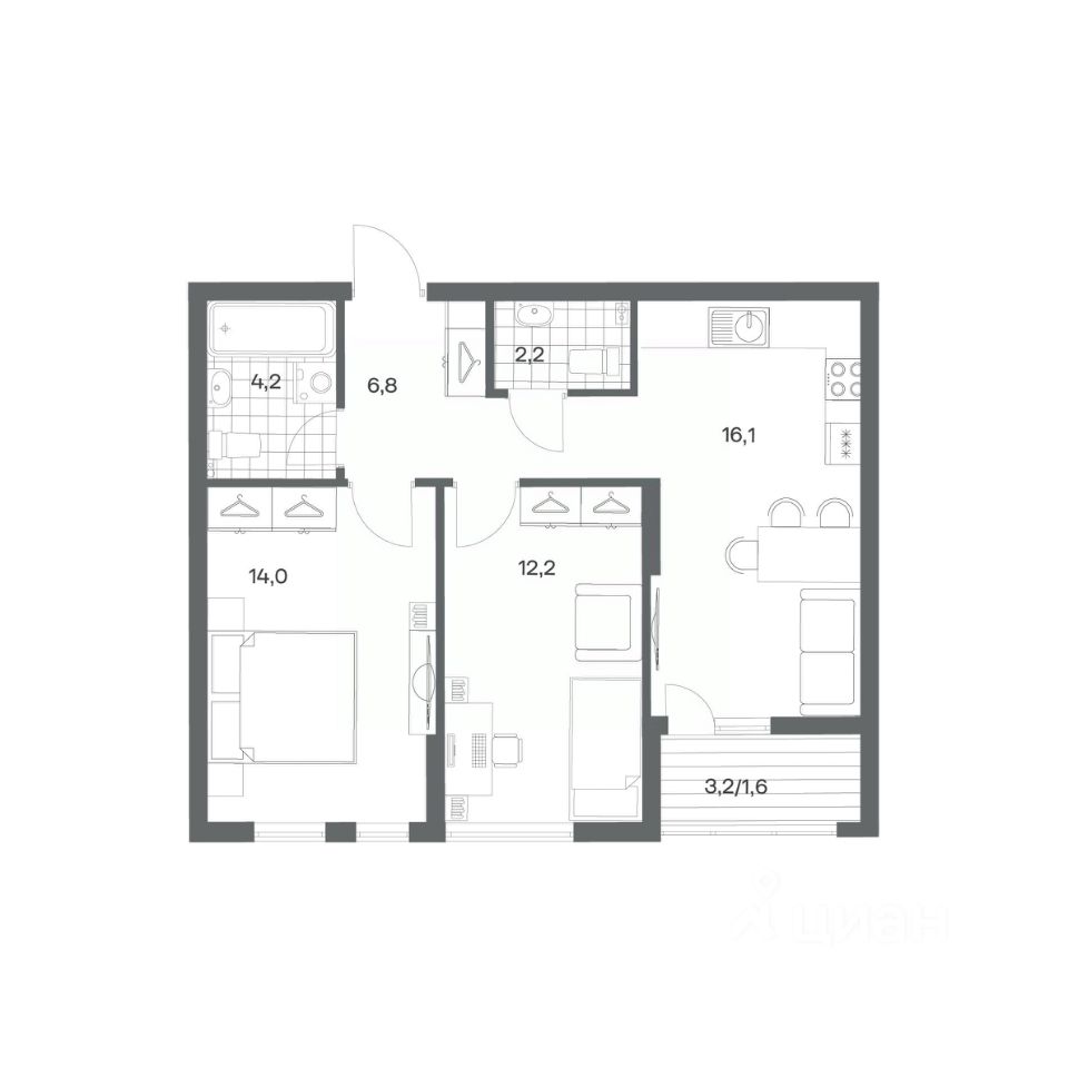 Продается квартира площадью 57.1 м² на 2 этаже 1 секции в Гагарина 30 от компании ГК ''ТРЕСТ''. Площадь кухни 16.1 м². Жилой комплекс комфорт-класса ''Гагарина 30'' расположен в Ленинградском районе Калининграда на улице Юрия Гагарина. Жилой комплекс включает в себя три корпуса высотой 9-18 этажей. Срок сдачи намечен на 1 квартал 2028 года.