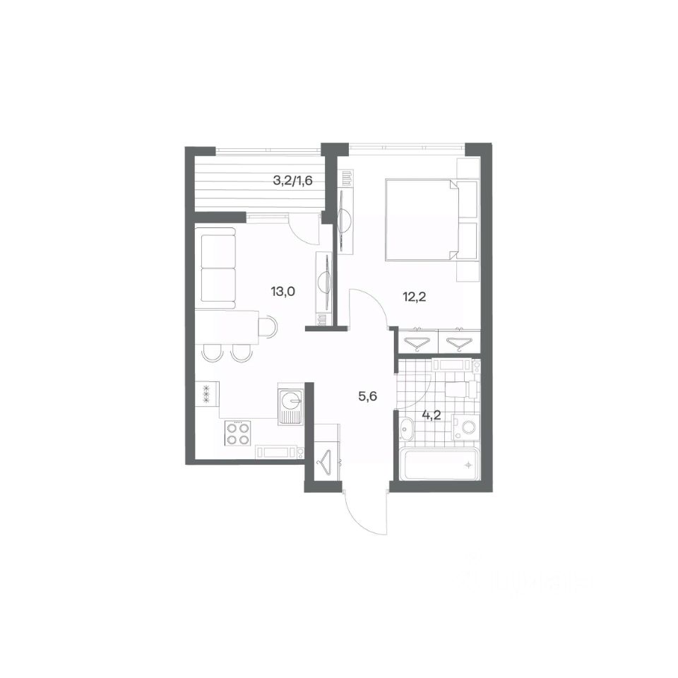 Продается квартира площадью 36.6 м² на 6 этаже 1 секции в Гагарина 30 от компании ГК ''ТРЕСТ''. Площадь кухни 13 м². Жилой комплекс комфорт-класса ''Гагарина 30'' расположен в Ленинградском районе Калининграда на улице Юрия Гагарина. Жилой комплекс включает в себя три корпуса высотой 9-18 этажей. Срок сдачи намечен на 1 квартал 2028 года.