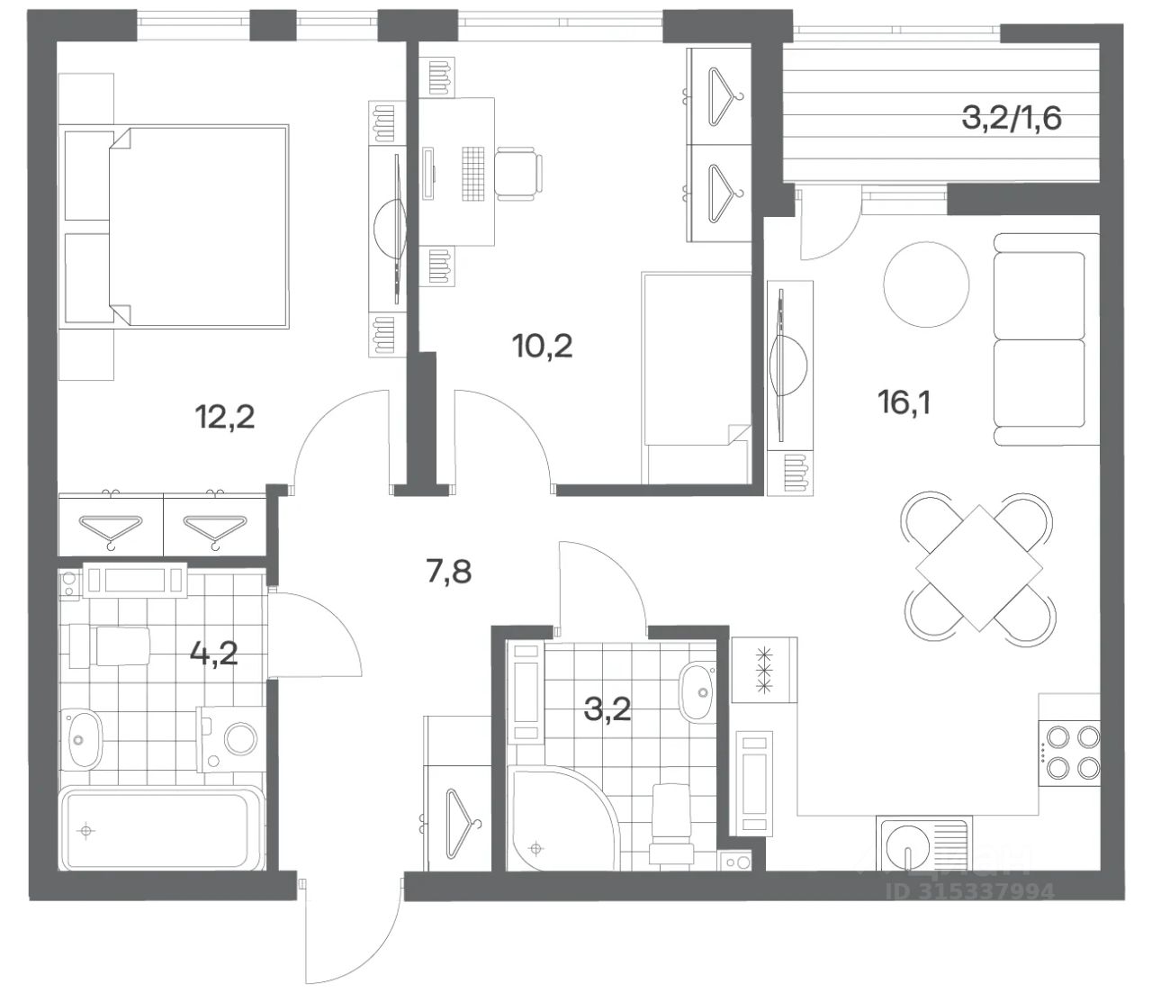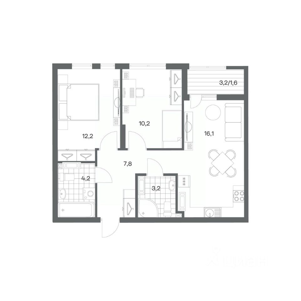 Продается квартира площадью 55.3 м² на 9 этаже 1 секции в Гагарина 30 от компании ГК ''ТРЕСТ''. Площадь кухни 16.1 м². Жилой комплекс комфорт-класса ''Гагарина 30'' расположен в Ленинградском районе Калининграда на улице Юрия Гагарина. Жилой комплекс включает в себя три корпуса высотой 9-18 этажей. Срок сдачи намечен на 1 квартал 2028 года.