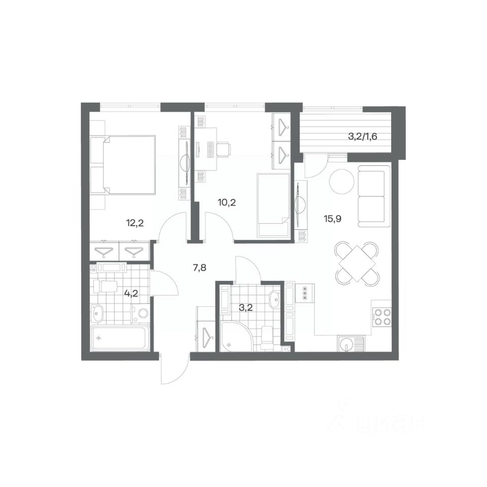 Продается квартира площадью 55.1 м² на 16 этаже 1 секции в Гагарина 30 от компании ГК ''ТРЕСТ''. Площадь кухни 15.8 м². Жилой комплекс комфорт-класса ''Гагарина 30'' расположен в Ленинградском районе Калининграда на улице Юрия Гагарина. Жилой комплекс включает в себя три корпуса высотой 9-18 этажей. Срок сдачи намечен на 1 квартал 2028 года.