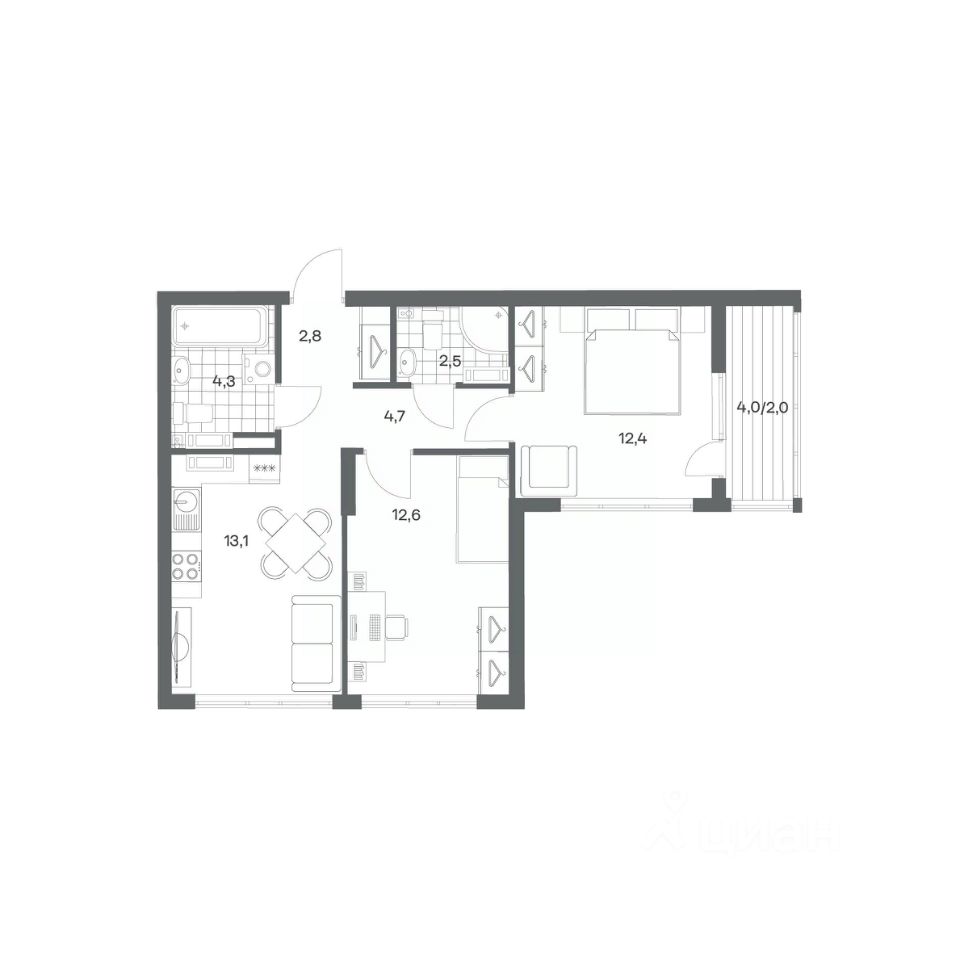 Продается квартира площадью 54.4 м² на 9 этаже 1 секции в Гагарина 30 от компании ГК ''ТРЕСТ''. Площадь кухни 13.1 м². Жилой комплекс комфорт-класса ''Гагарина 30'' расположен в Ленинградском районе Калининграда на улице Юрия Гагарина. Жилой комплекс включает в себя три корпуса высотой 9-18 этажей. Срок сдачи намечен на 1 квартал 2028 года.
